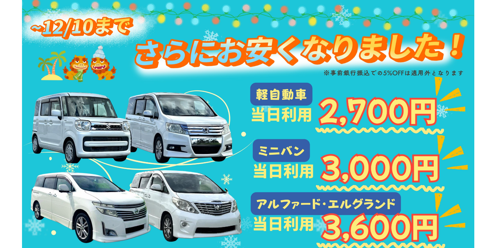車種の制限や割引上限はございませんので、人気車種や長期レンタルほど、さらにおトクになります!